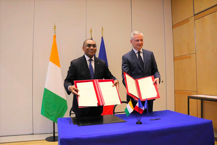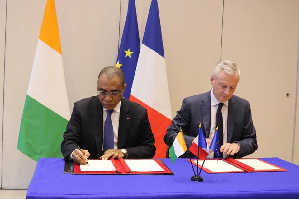 Le ministre ivoirien de l’Economie et des Finances, Adama Coulibaly, et la secrétaire d’Etat française, chargée du Développement, de la Francophonie et du Partenariat, Chrysoula Zacharopoulou, ont procédé à la signature de ces quatre conventions. C’était en présence des ministres de la Promotion de la jeunesse, de l’Insertion professionnelle et du Service civique, Mamadou Touré, de l’Environnement et du Développement durable, Jean-Luc Assi, du directeur de l’Agence française de Développement (AFD), Adrien Haye et de l’ ambassadeur de France en Côte d’Ivoire, Jean Christophe Belliard.